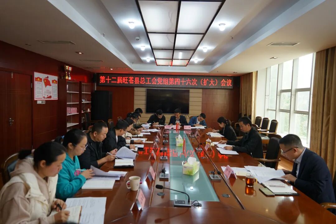 10月24日,第十二届旺苍县总工会党组召开第四十六次(扩大)会议,专题学习中国共产党广元市第八届委员会第七次全体会议精神,县总工会党组书记、常务副主席王剑主持会议并讲话。